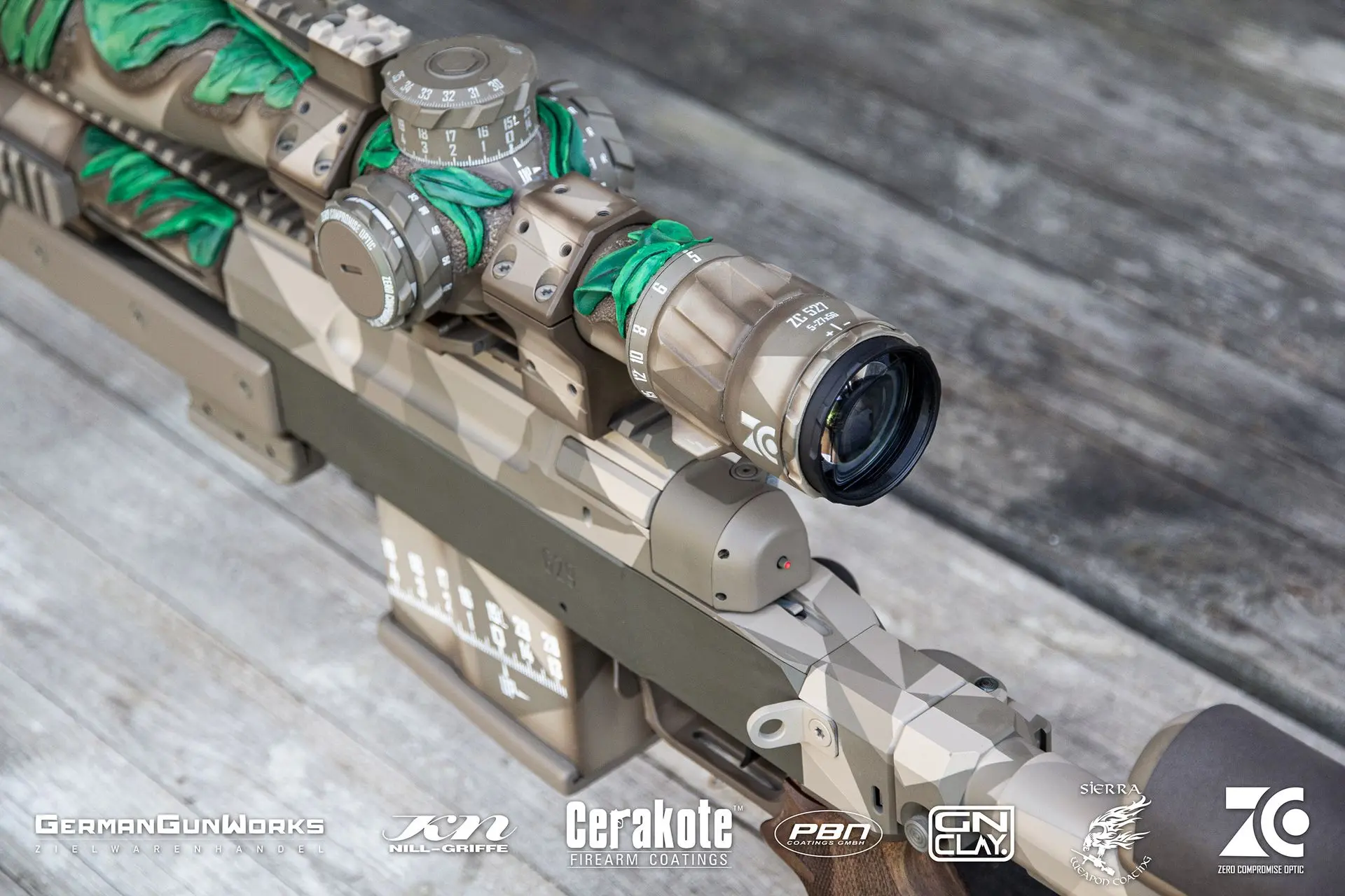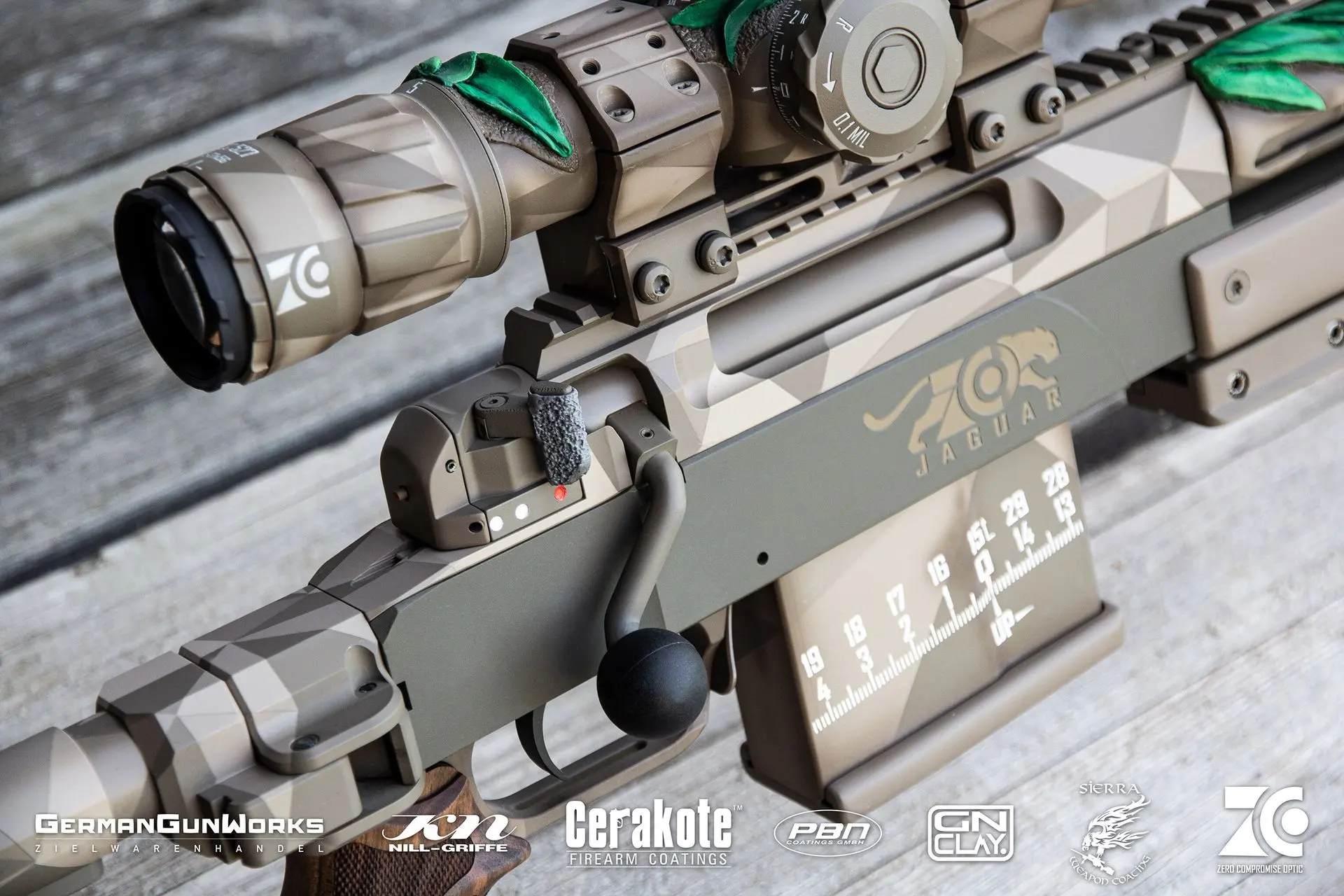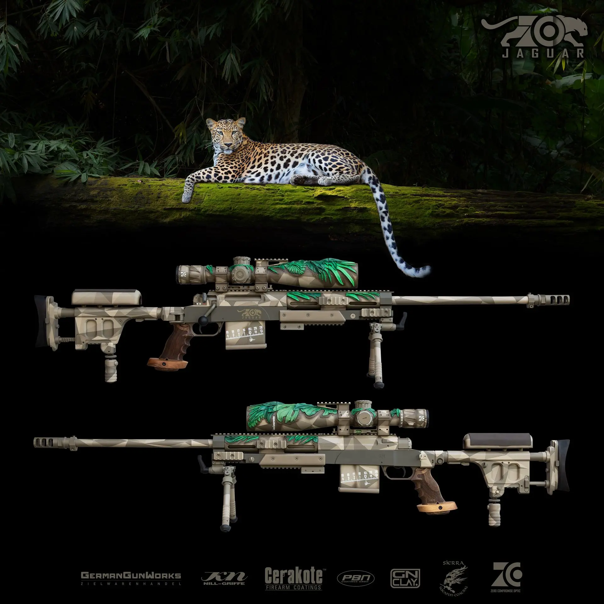 El proyecto de GermanGunWorks «Zero Compromise Optic ZC527 Jaguar» es un rifle experimental que muestra diferentes técnicas y posibilidades de rediseño. Bajo el motivo de la jungla se creó un concepto global que puede alcanzar sus objetivos de manera óptima. Especialmente por sus mayores capacidades gracias al cristal más potente, el bípode, la protección contra la corrosión y las modificaciones menores del arma (Torx en lugar de Allen, etc.), puede convencer en comparación con las características estándar del G29.